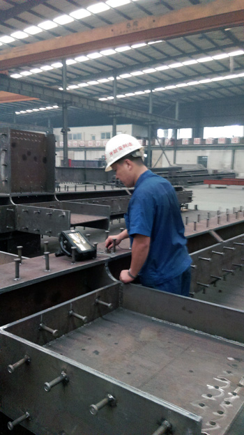 安利达钢构公司非常注重钢结构件生产安装流程中重要节点检验、检测及控制,如生产前材料购进后的的材料厚度的检验,材料化学成分复检分析;生产过程中焊接件超声波探伤,焊缝高度的测量以及按照规范进行破坏性试验;生产后坚持整体验收合格才入库。安利达钢构各种检测设备应有尽有,保证了钢结构产品的合格性。